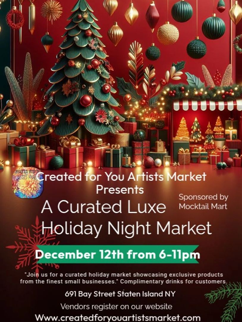 Created for you artists market events creates events to help support small businesses and entrepreneurs promote their businesses to the public. And without your support we could not do what we do. Hope to see everyone there! Happy Holidays!